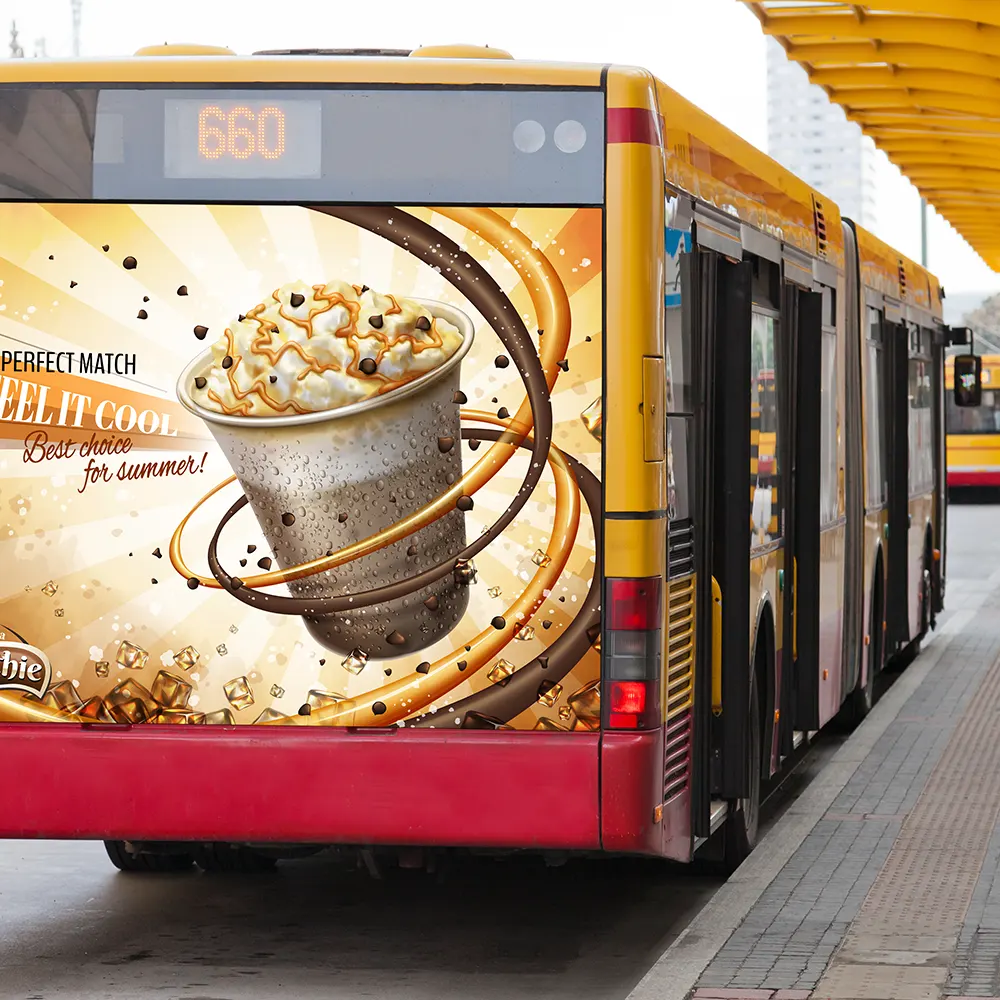 - Advertising prints on a bus, rickshaws and other vehicles