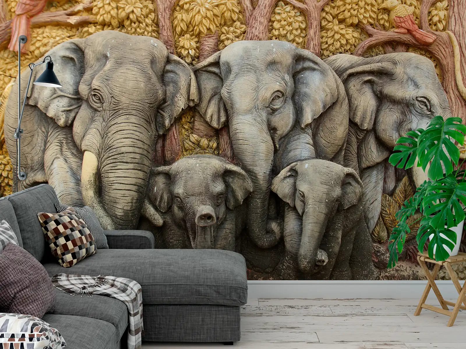 3D Elephant Wall Mural – Traditional Plaster Art for Home & Heritage Decor