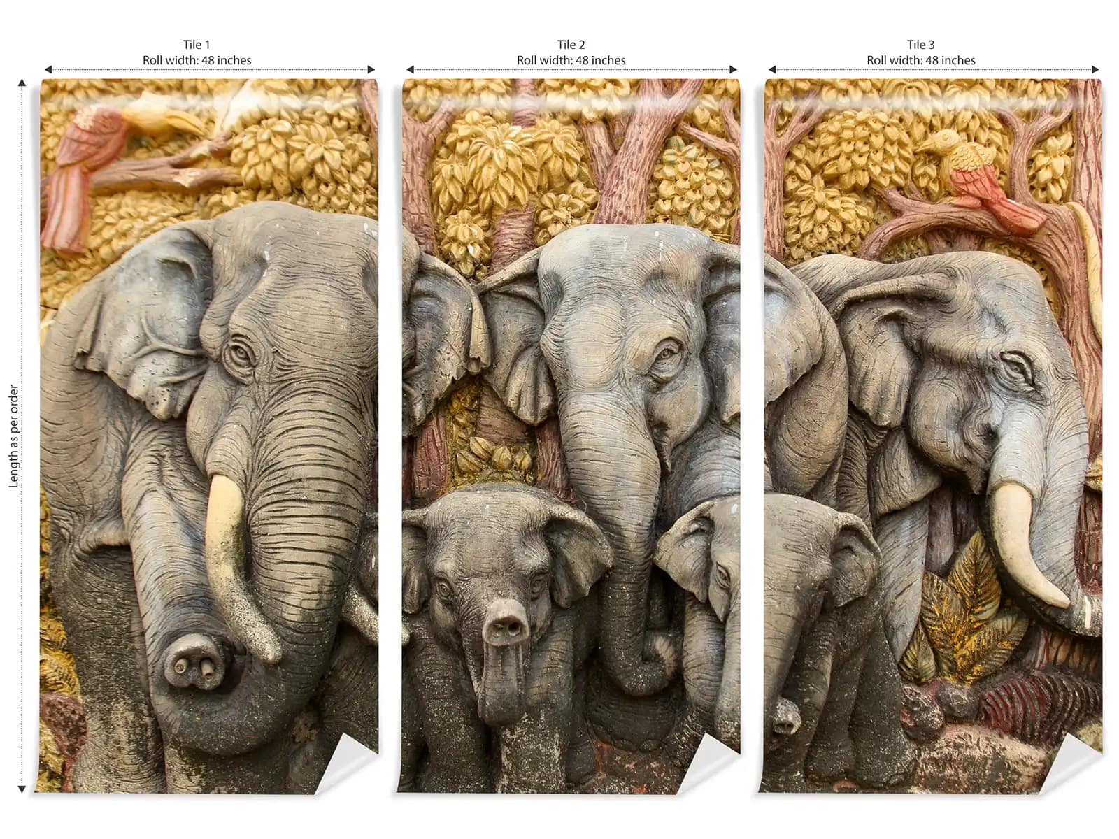 All Wall Coverings are generally installed in tiles (Refer images above). All the tiles are printed with 0.5 inch of overlap which can be cut and removed after the installation is complete.