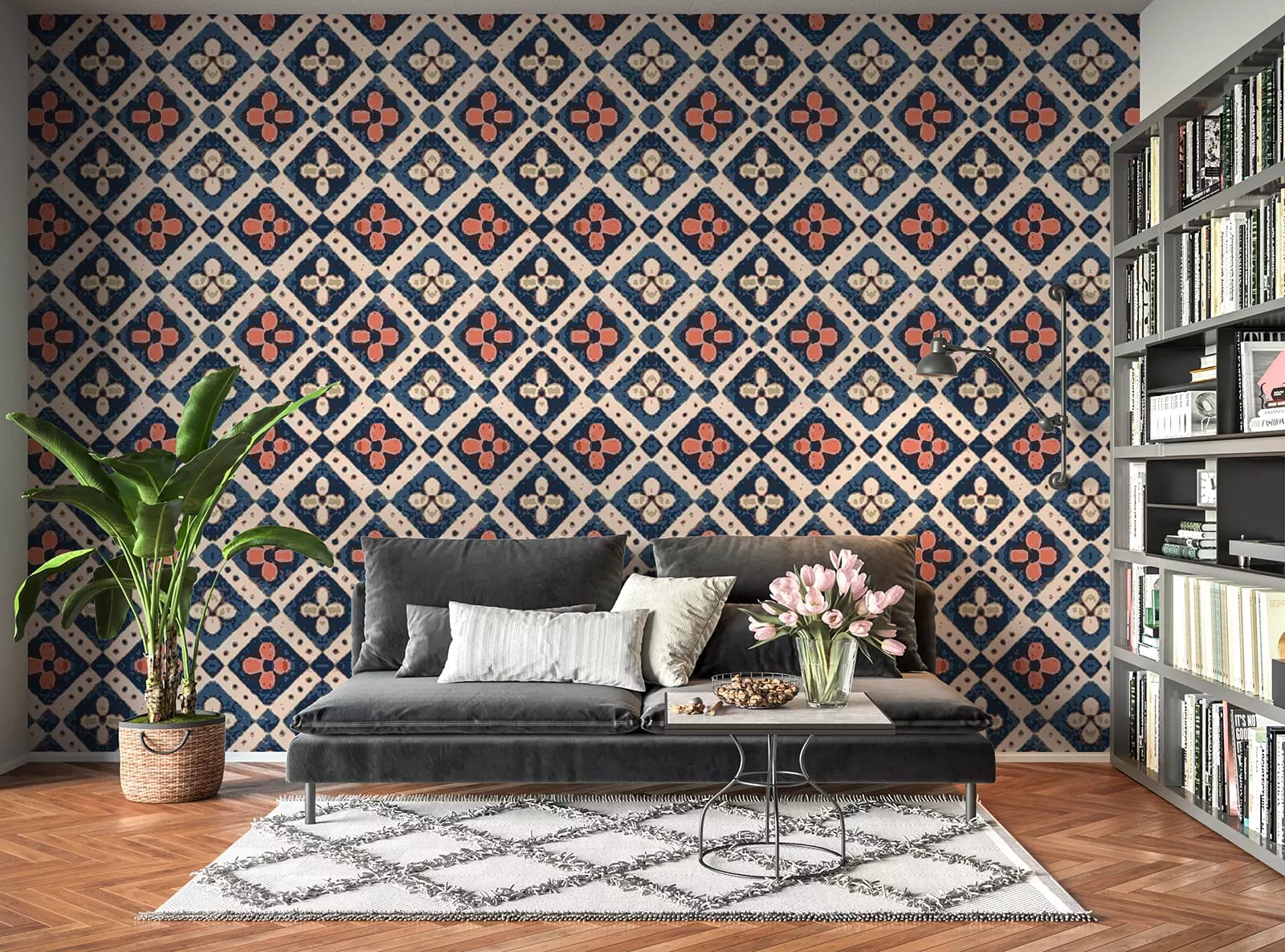 All Wall Coverings are generally installed in tiles (Refer images above). All the tiles are printed with 0.5 inch of overlap which can be cut and removed after the installation is complete.