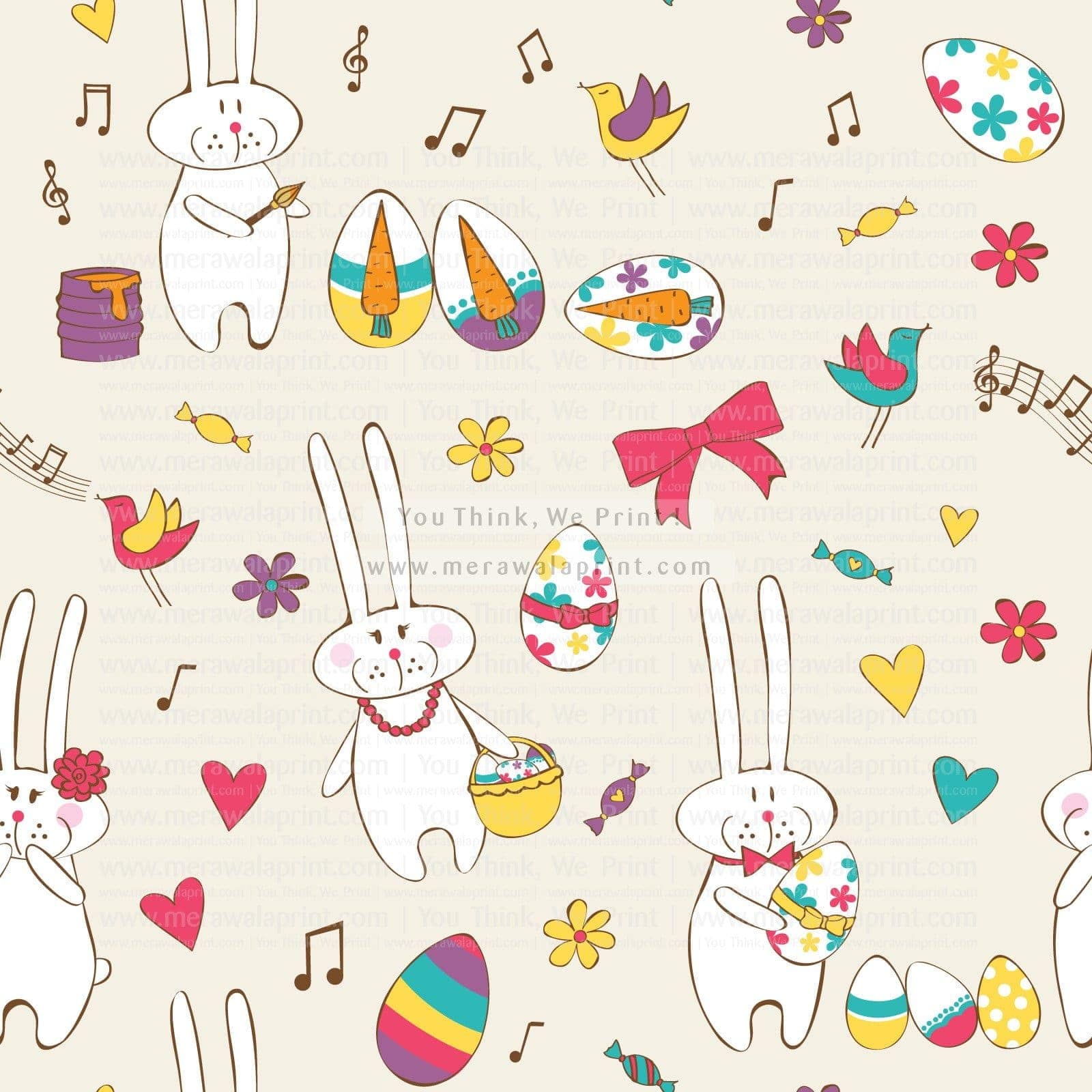 Cute Easter seamless with bunnies with eggs, birds & other colorful elements | MWP023KSP