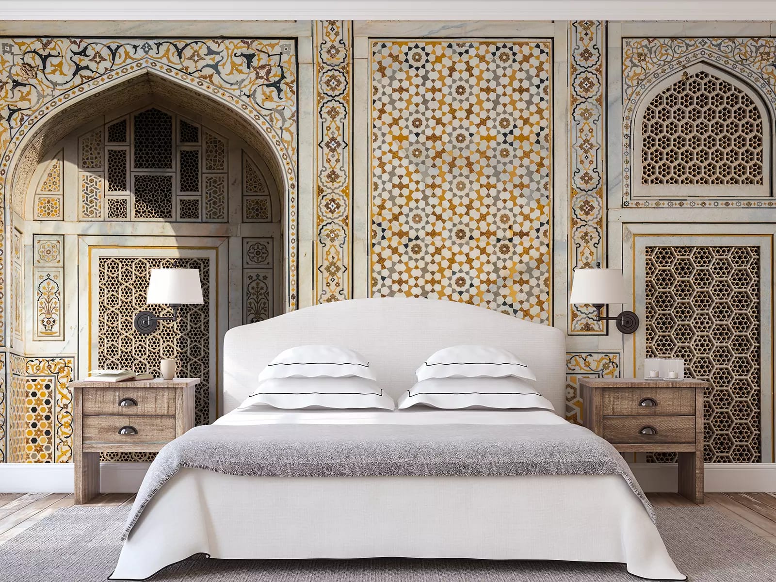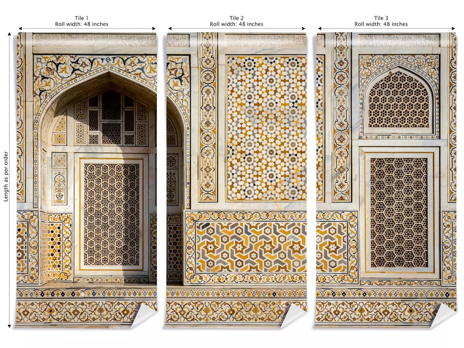All Wall Coverings are generally installed in tiles (Refer images above). All the tiles are printed with 0.5 inch of overlap which can be cut and removed after the installation is complete.