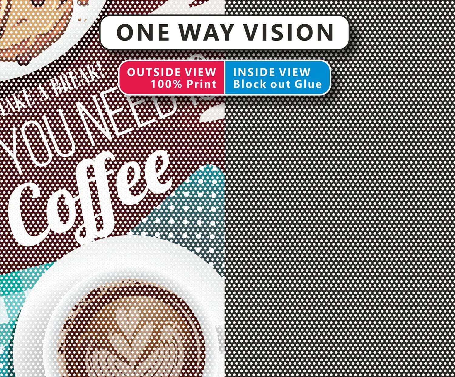 One way vision as name implies is a self adhesive banner film of vinyl material which allows vision from one side and block the same from other side.
