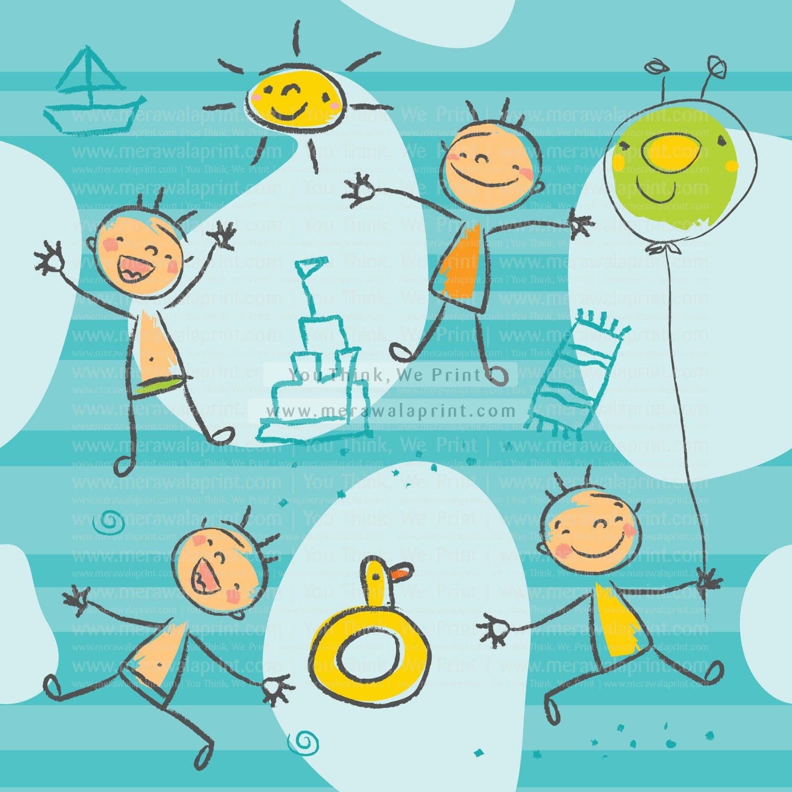 Cute kids playing on the beach, seamless pattern series | MWP030KSP