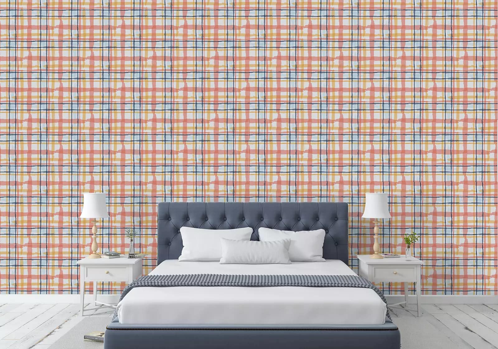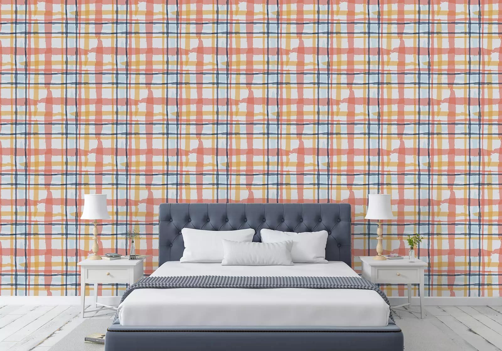 Scottish Ornament Kilt Texture wallpaper draws inspiration from traditional Scottish kilt patterns, reimagined with a modern grunge aesthetic. Hand-painted crossing brush strokes create a textured, layered look that adds depth, character, and artistic flair to your walls.