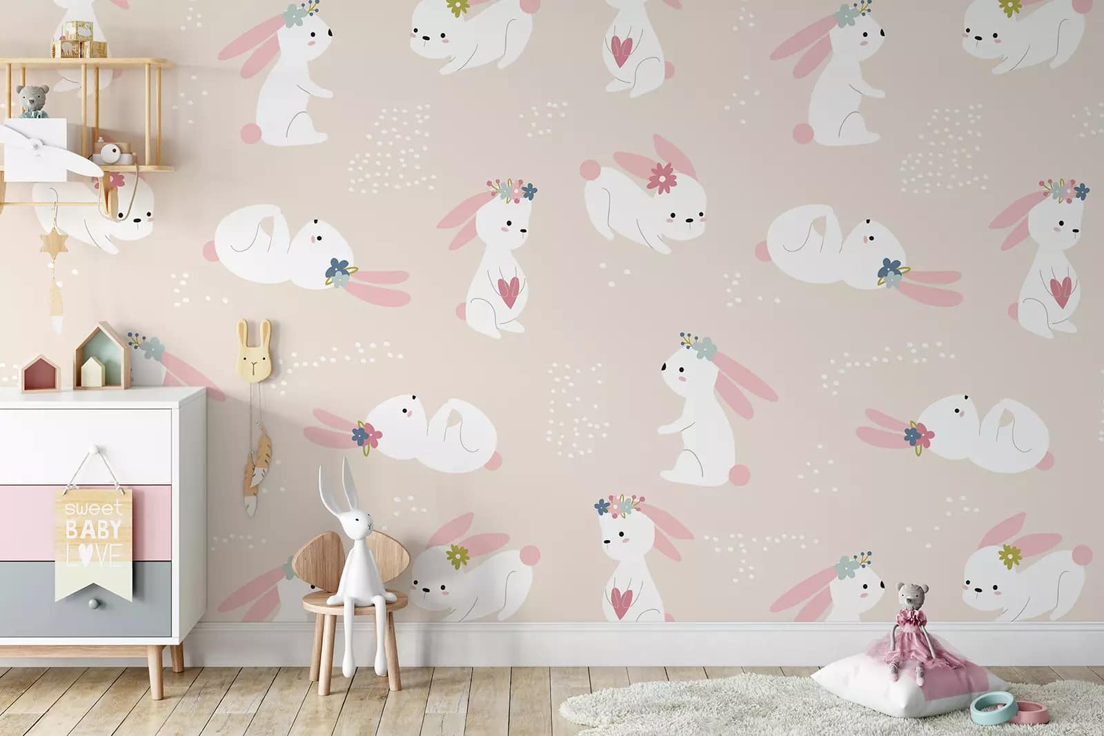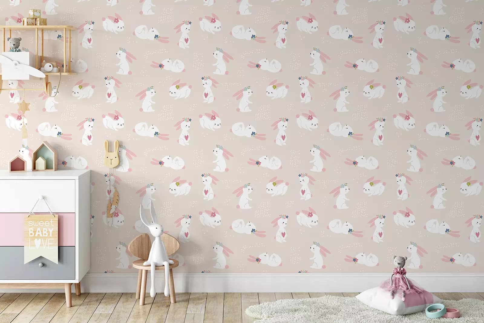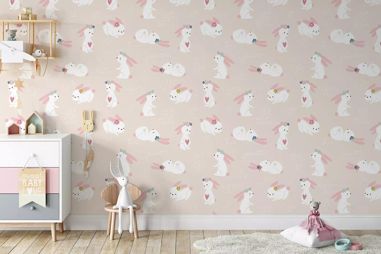 Seamless childish pattern with cute rabbits Creative spring kids texture for fabric wrapping textile wallpaper apparel | MWP008PETSWC