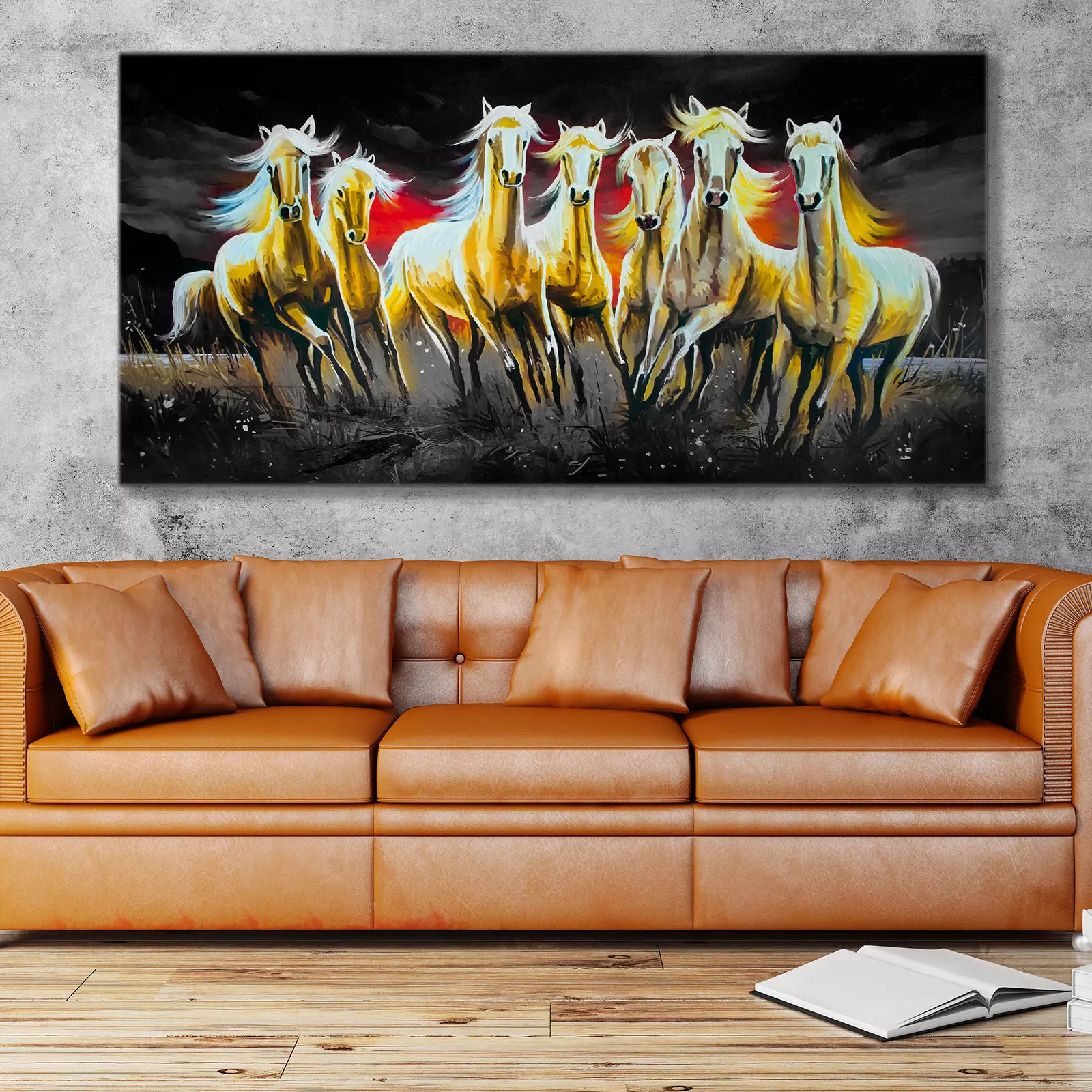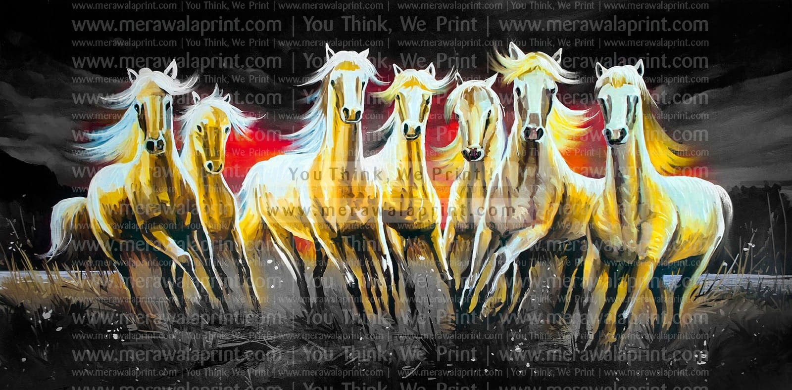White Seven running horses on decorative canvas art print mera wala print