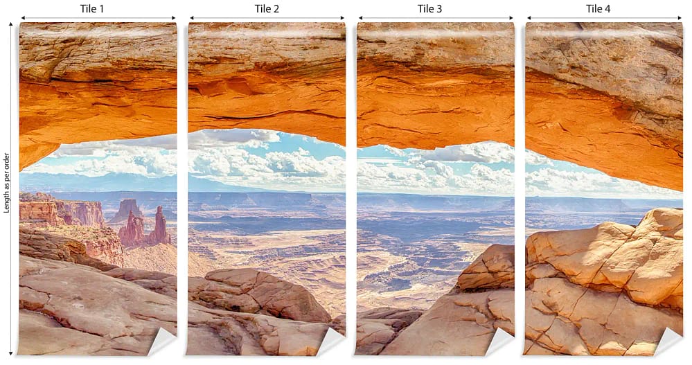 All Wall Coverings are generally installed in tiles (Refer images above). All the tiles are printed with 0.5 inch of overlap which can be cut and removed after the installation is complete.